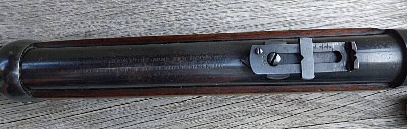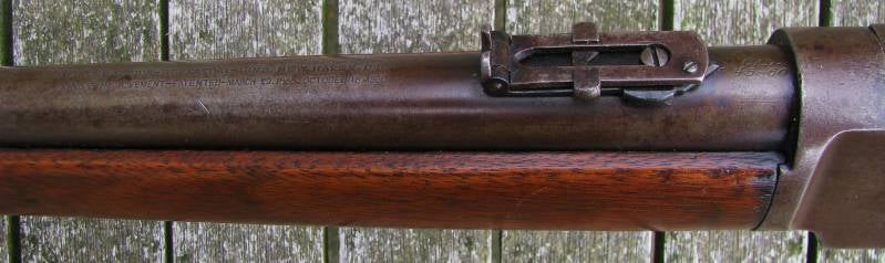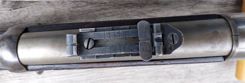 Case colors can be seen on the lever and hammer. Sights are excellent and correct for this rifle and rare site is adjustable. Wood to metal fit is perfect without any damage. All markings are 100%.