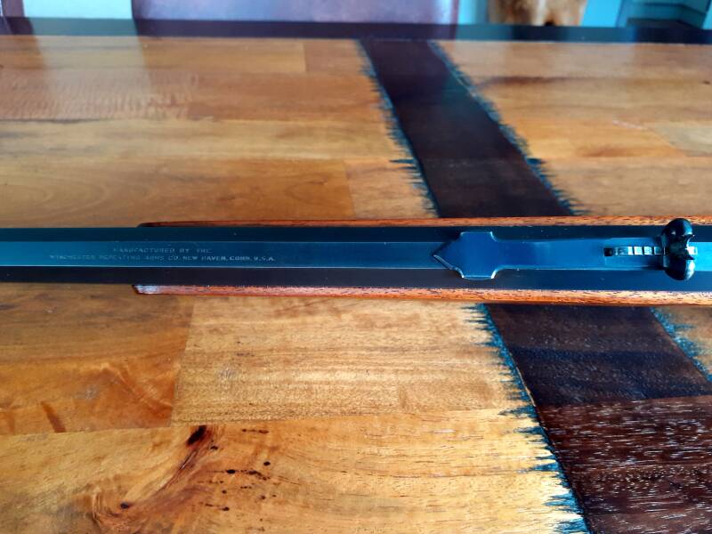 The barrel and magazine has retained approx. 85-90% of the original factory blue. The bore is fine rated a 8+ on a 1 to 10 scale. The receiver has retained approx. 85-90% of its original factory blue with a tight, smooth and mechanically perfect action.