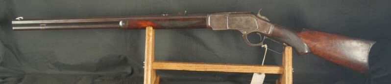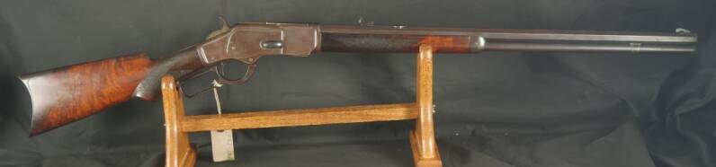 Winchester Model 1876 Sporting Rifle 28 inch round barrel .45-60 WCF. The serial number of this rifle is 24xxx placing date of manufacture in 1882. This is a second model rare in round barrel configuration (only 1 in 3 had round barrel).