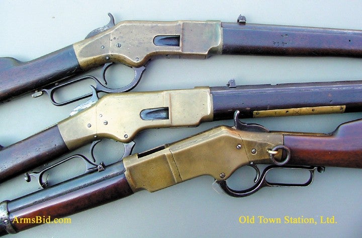 Some Henry rifles were made with iron frames, but gun metal, a form of bronze about the same color as brass, was used almost exclusively after serious production began. Easy to machine, gun metal was used exclusively in the frames of the new rifles. It was not long before the new Winchester was dubbed the “Yellow Boy.” The rifle was an instant hit. Some 150,000 Yellow Boys were produced from 1867 to 1892-93. Serial numbers began in the 13,000 range where the Henry left off.